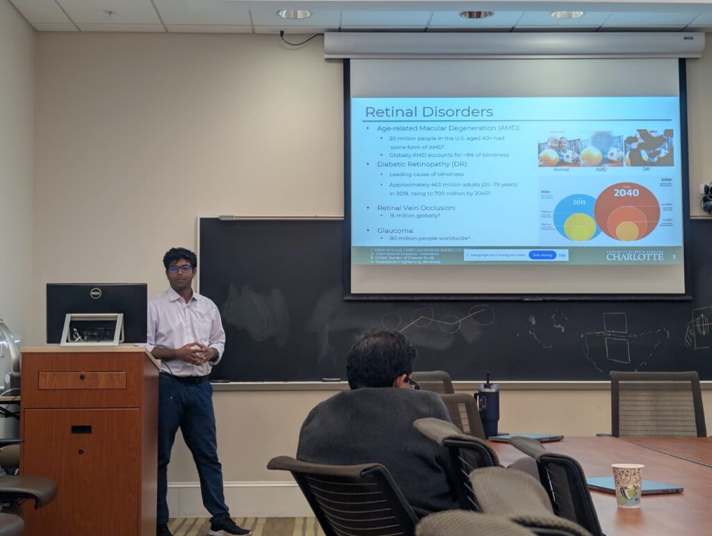 April 2024: Sina won first prize at the UNC Charlotte Annual Graduate Research Symposium for his oral presentation on Federated Learning for AMD. Congrats!